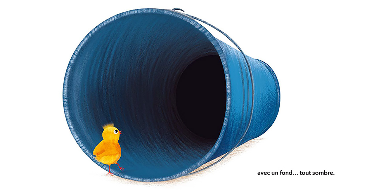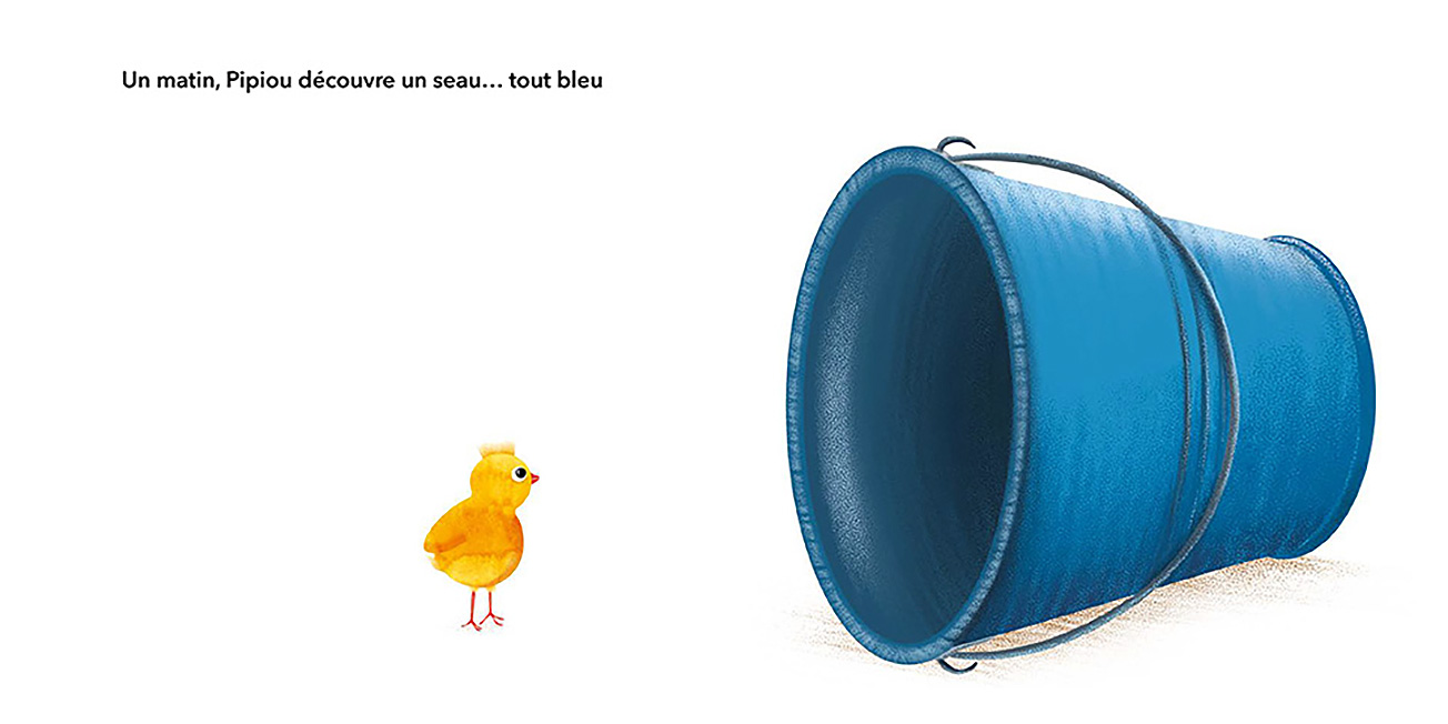 Pipiou, le petit poussin très courageux, s’aventure tout au fond d’un seau… et c’est toute une histoire !